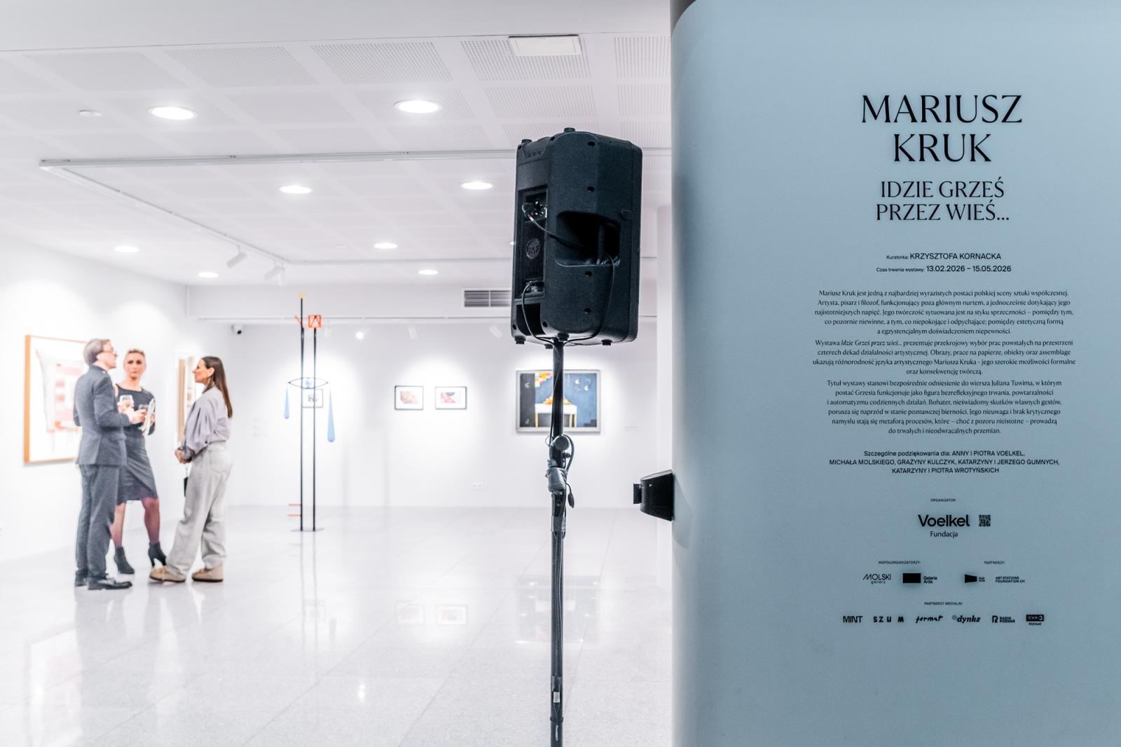 Wystawa „Idzie Grześ przez wieś…” stanowi przekrojową prezentację dorobku Kruka, obejmującą prace powstałe na przestrzeni ponad czterech dekad. Obrazy, prace na papierze, obiekty oraz assemblage budują wielowarstwową narrację, w której codzienność poddawana jest subtelnej, lecz konsekwentnej transformacji.